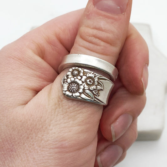 April 1950, Custom Size, RARE Spiral Ring, Vintage Sunflower Spoon Ring