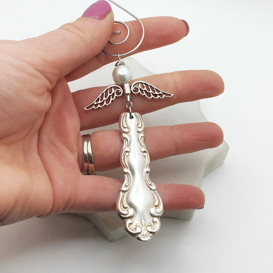 Angel Ornament, Modern Baroque 1969, Hand Stamped Vintage Spoon Ornament