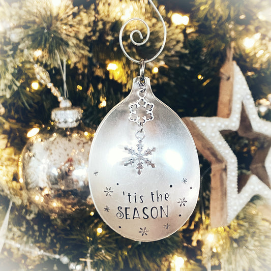 'tis the Season, Spoon Bowl Ornament, Hand Stamped Vintage Spoon Ornament, Snowflake Ornament