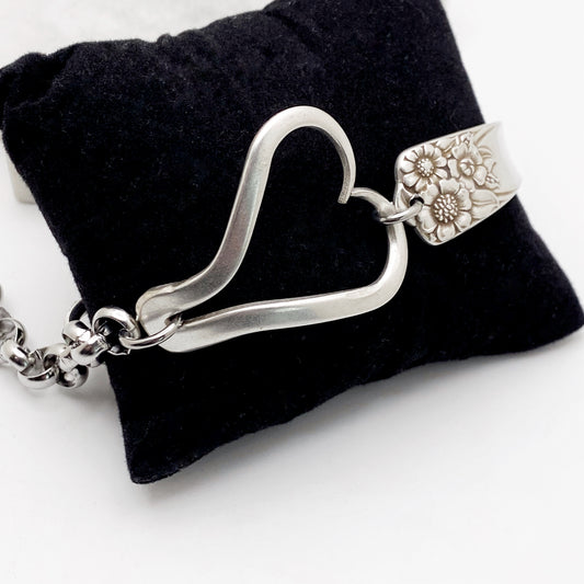 April 1950, RARE Curly Fork Heart Bracelet, Vintage Spoon Handle, Vintage Fork Bracelet