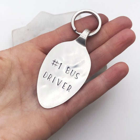 #1 Bus Driver, Hand Stamped Vintage Spoon Keychain, Bus Driver Gift
