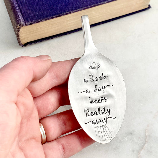 A Book a Day Keeps Reality Away, Vintage Spoon Bookmark