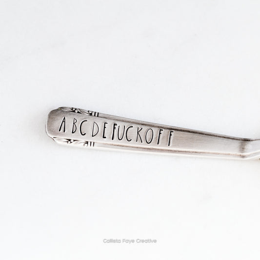ABCDEFUCKOFF, Hand Stamped Vintage Spoon Keychain