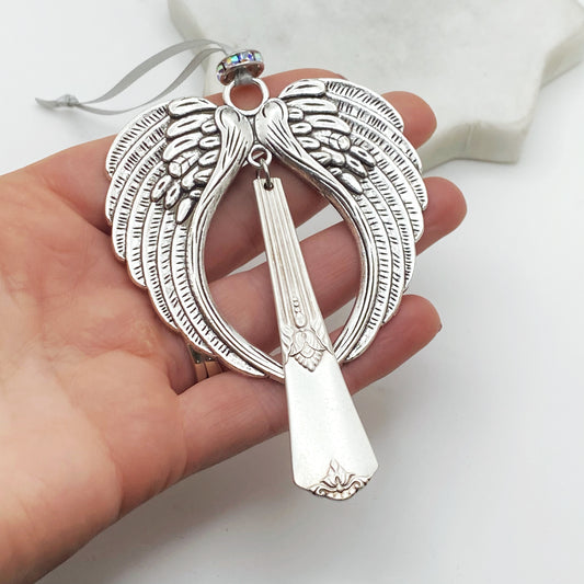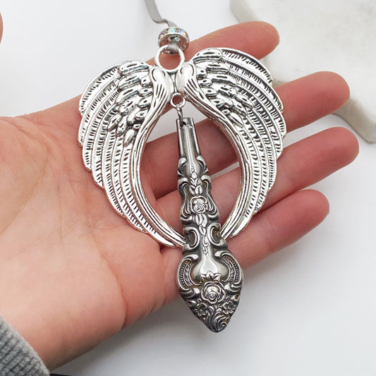 Large Angel Ornament, Noblesse 1930, Hand Stamped Vintage Spoon Ornament