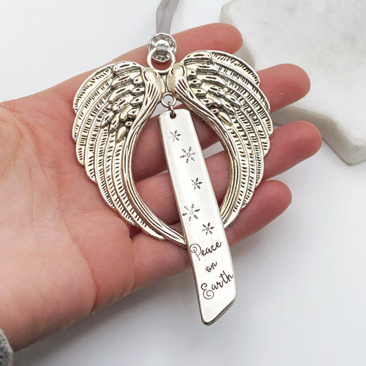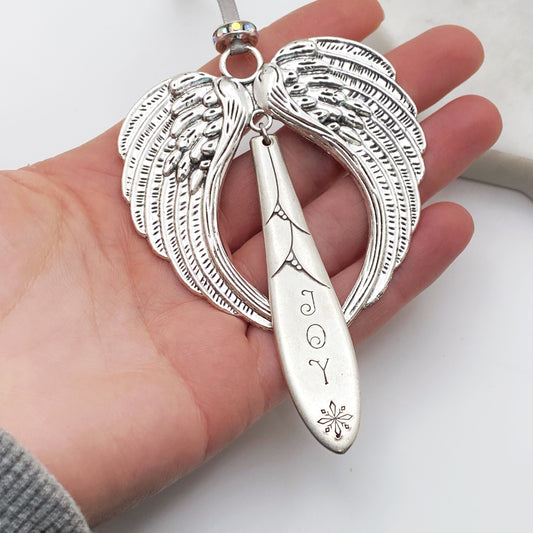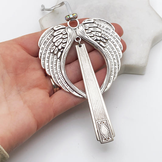 Large Angel Ornament, Peace on Earth, Hand Stamped Vintage Spoon Ornament