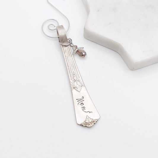Mom, Angel Charm Ornament, Guild-Cadence 1932, Hand Stamped Vintage Spoon Ornament