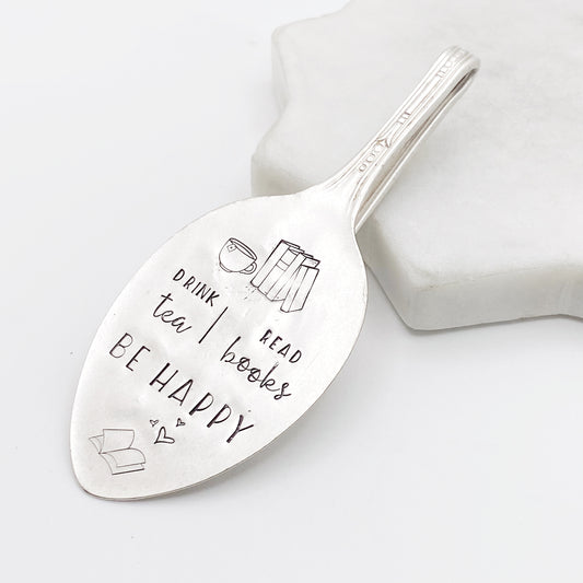 Drink Tea, Read Books, Be Happy, Vintage Spoon Bookmark