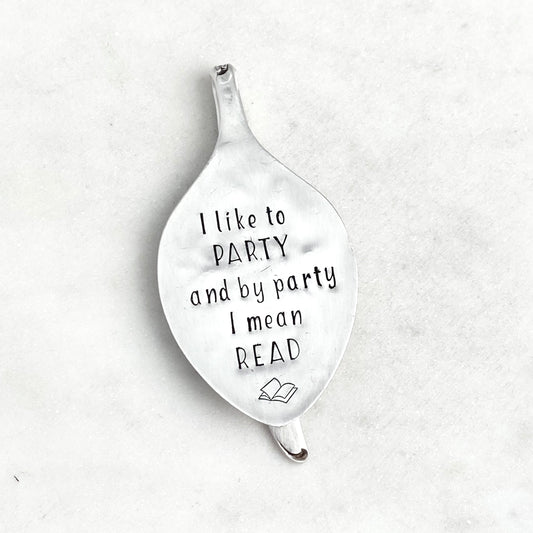 I Like to Party and by Party I Mean Read, Vintage Spoon Bookmark