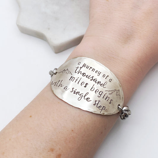 A Journey of a Thousand Miles..., Stamped Spoon Bowl Bracelet, Vintage Silverware Jewelry, Antique Spoon Bracelet
