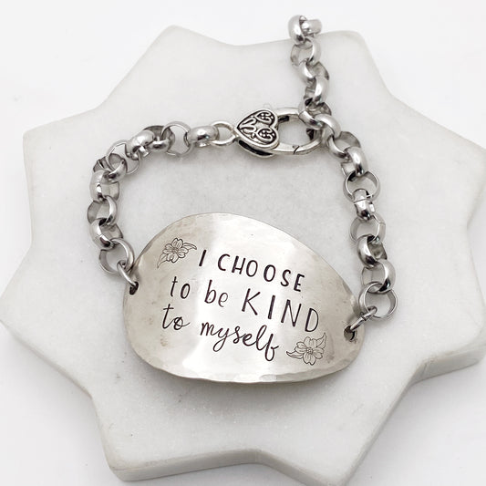 I Choose to be Kind to Myself, Stamped Spoon Bowl Bracelet, Vintage Silverware Jewelry, Antique Spoon Bracelet