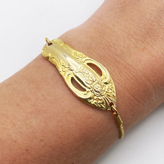 Golden Pierced, Adjustable Bracelet, Reclaimed Vintage Spoon Handle, Antique Spoon Bracelet