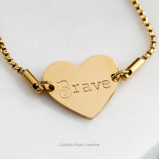 Brave, Adjustable Heart Bracelet, Stainless Steel Bracelet