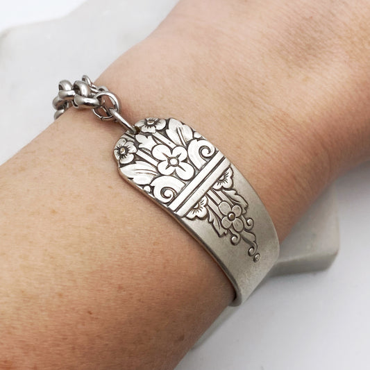 First Love 1937, Half Chain Bracelet, Vintage Spoon Handle, Antique Spoon Bracelet