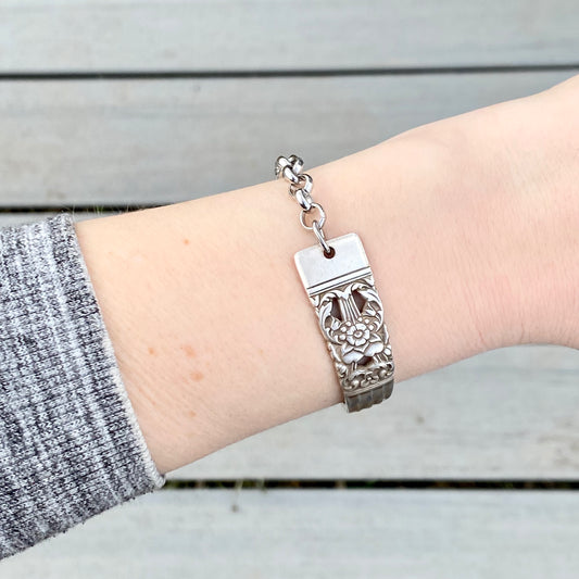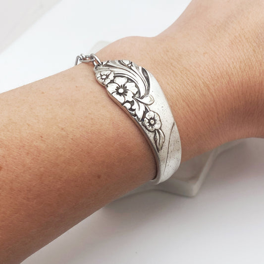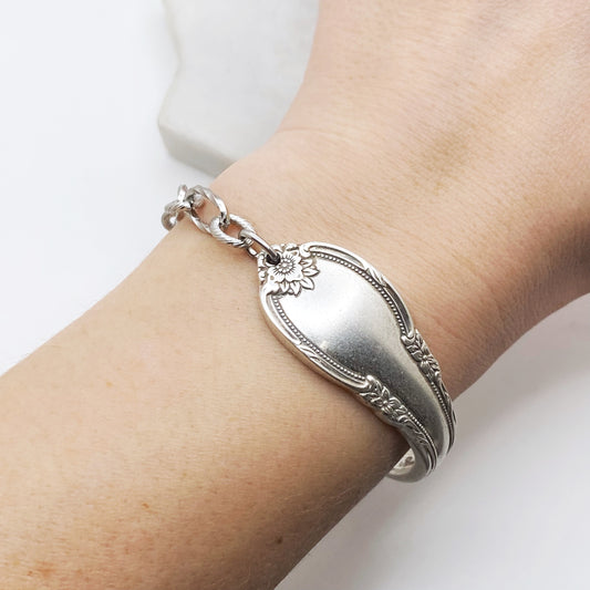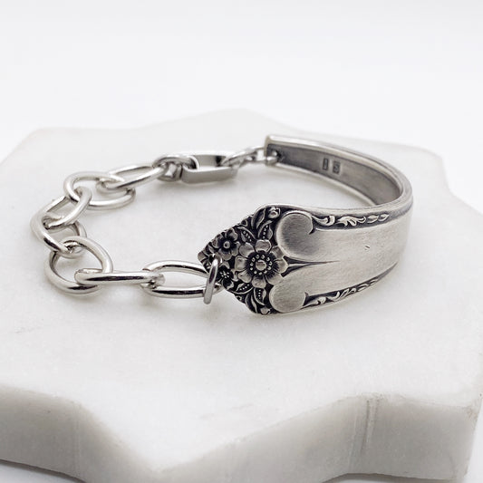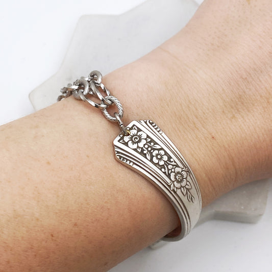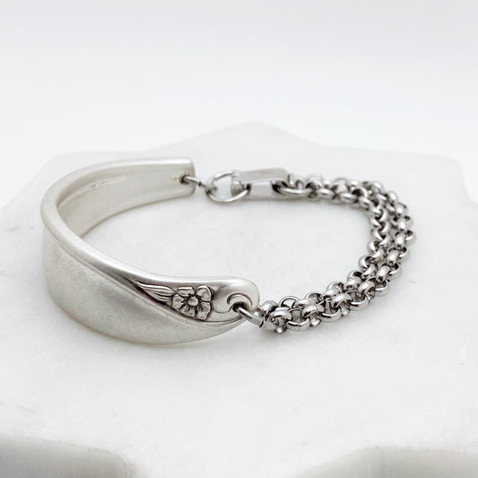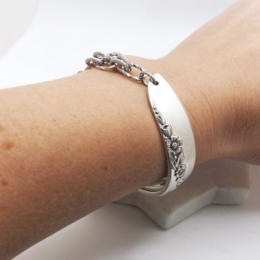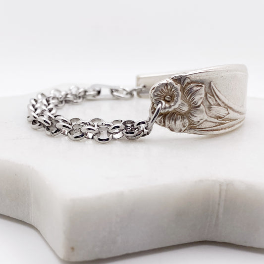 Flowertime 1963, Half Chain Bracelet, Vintage Spoon Handle, Antique Spoon Bracelet