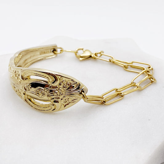 Golden Pierced, Half Chain Bracelet, Vintage Spoon Handle, Antique Spoon Bracelet