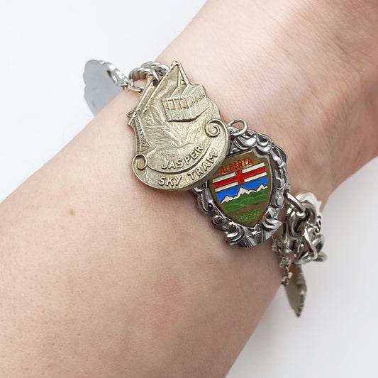 Alberta Charm Bracelet, Canadian Jewelry, Provincial Bracelet, Reclaimed Collector's Spoon Bracelet, Vintage Souvenir Spoon Jewelry