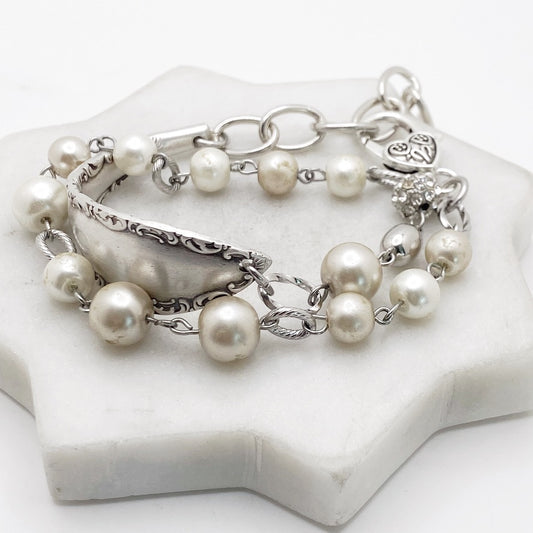 Oxford 1901, RARE Antique Double Wrap Beaded Bracelet, Vintage Spoon Handle, Antique Spoon Bracelet
