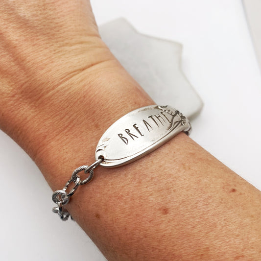 I Choose to be Kind to Myself, Stamped Spoon Bowl Bracelet, Vintage Silverware Jewelry, Antique Spoon Bracelet