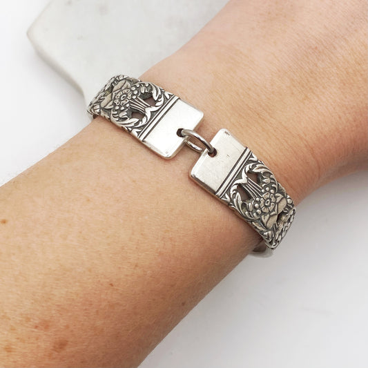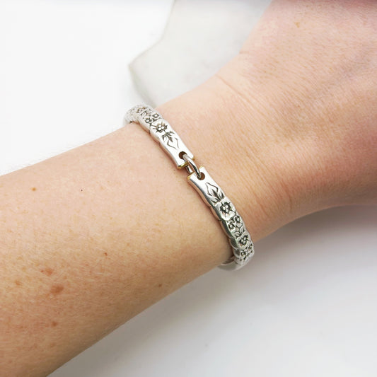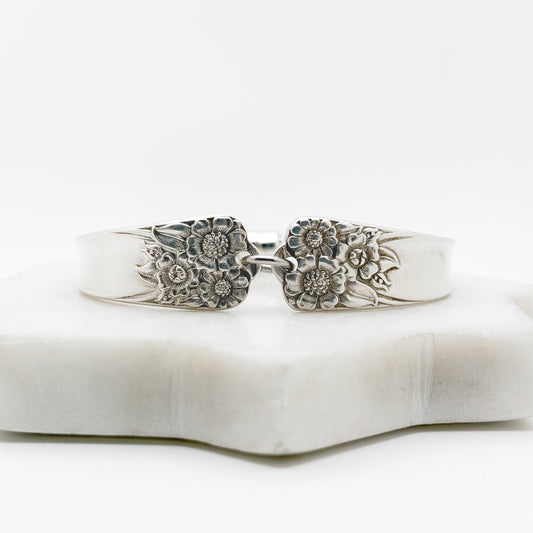 Silver Flower 1960, RARE Two-Part Spoon Bracelet, Vintage Spoon Handle, Vintage Spoon Bracelet