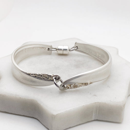Silvery Mist 1955, Two-Part Spoon Bracelet, Vintage Spoon Handle, Vintage Spoon Bracelet