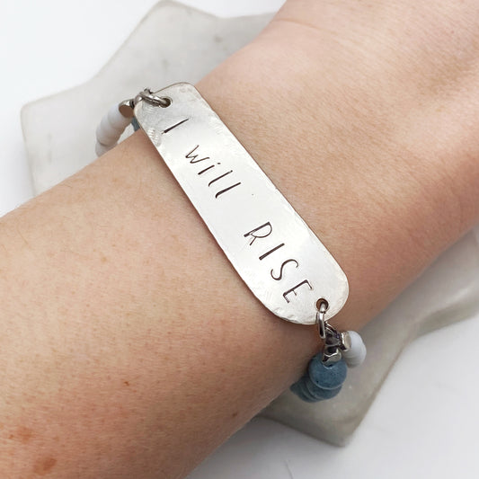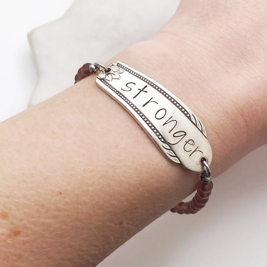 I Will Rise, Double Strand Beaded Silverware Stretch Bracelet, Vintage Spoon Handle, Antique Butter Spreader Bracelet