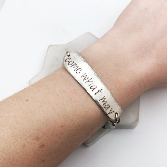 Come What May, Double Strand Beaded Silverware Stretch Bracelet, Vintage Spoon Handle, Antique Butter Spreader Bracelet
