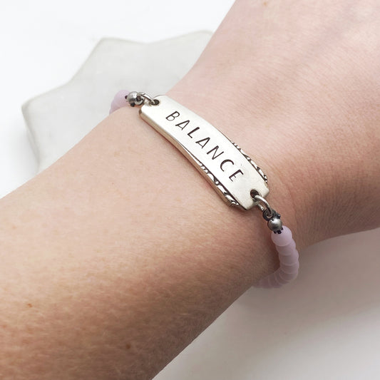 Balance, Brookwood Banbury 1950, Blossom Pink Sea Glass, Beaded Silverware Stretch Bracelet, Vintage Spoon Handle, Antique Spoon Bracelet