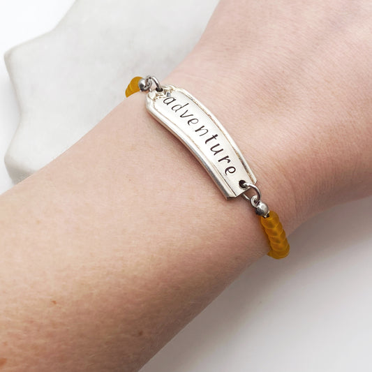Adventure, Yellow Sea Glass, Beaded Silverware Stretch Bracelet, Vintage Spoon Handle, Antique Spoon Bracelet