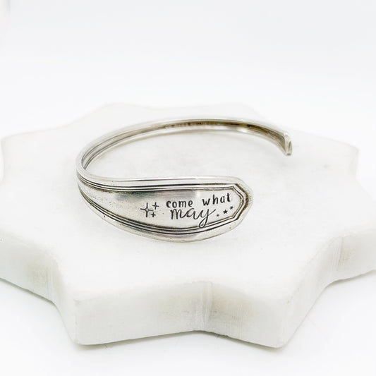 Come What May, Clinton 1919, Antique Cuff Bracelet, Vintage Spoon Handle, Iced Tea Spoon Bracelet