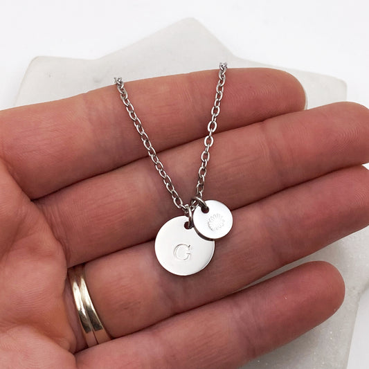 Custom Initial / Birth Flower, Mini Coin Necklace, Personalized