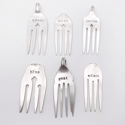 Fork Charcuterie Labels, Cheese Markers, Garnish Picks, Hand Stamped Vintage Fork