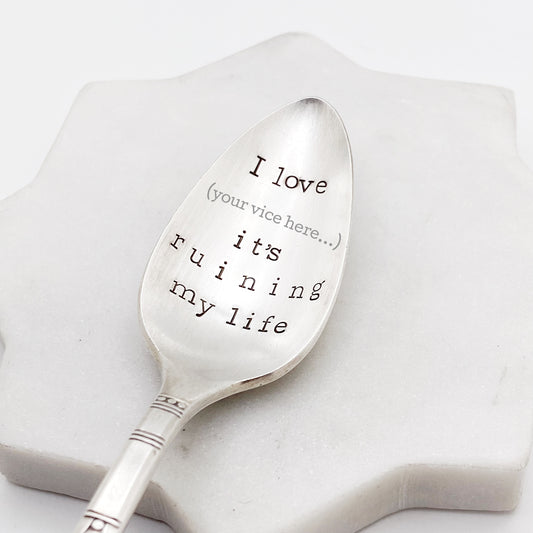 I Love You It's Ruining My Life (customizable), Hand Stamped Vintage Spoon