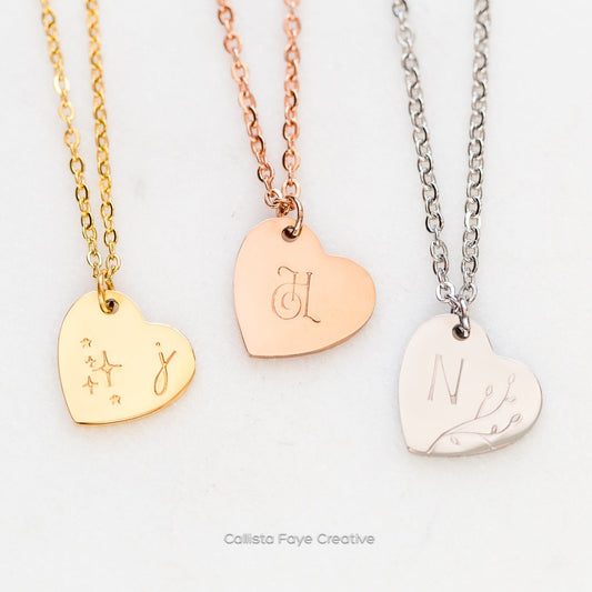 Custom Initial Petite Heart Pendant, Hand Stamped Heart Necklace, Personalized