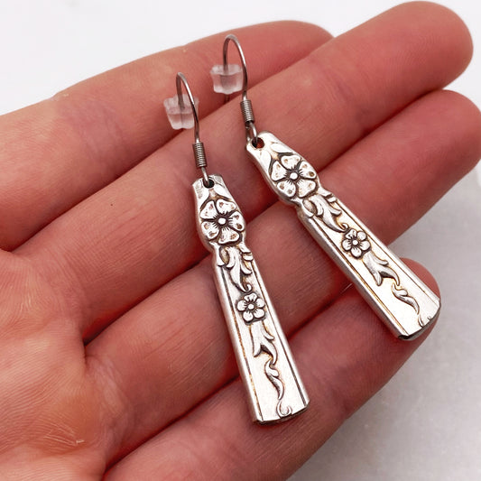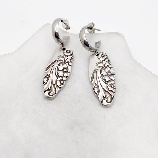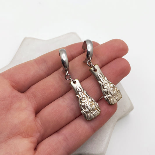 Moss Rose 1949, Spoon Handle Earrings, Reclaimed Silverware Earrings, Vintage Spoon Jewelry