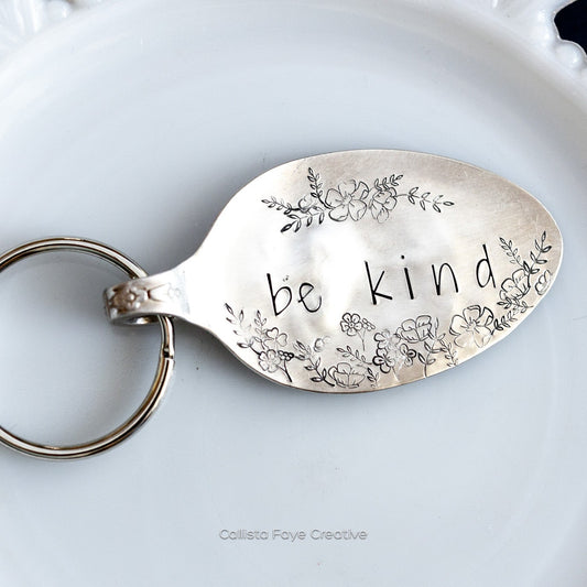 Be Kind, Hand Stamped Vintage Spoon Keychain