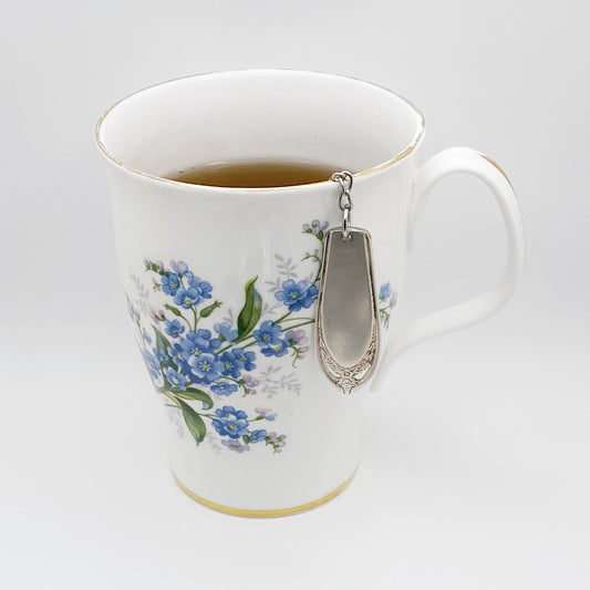 Lovelace 1936 Tea Infuser, Loose Leaf Tea Steeper, Heart Shape Tea Diffuser with chain and Vintage Silverware Charm, Stainless Steel Tea Ball Strainer