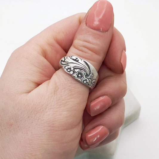 Fuck It, Silvery Mist 1955, Custom Size Spoon Ring, Vintage Silverware Ring