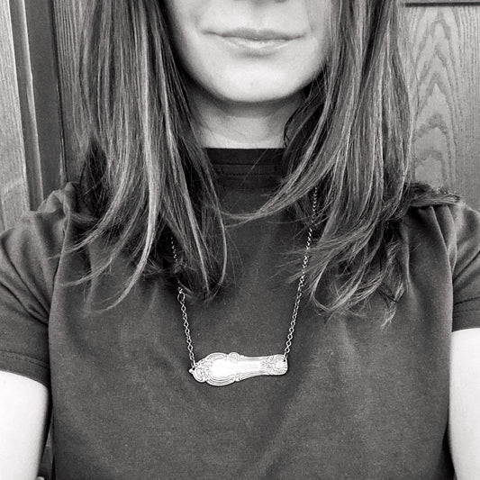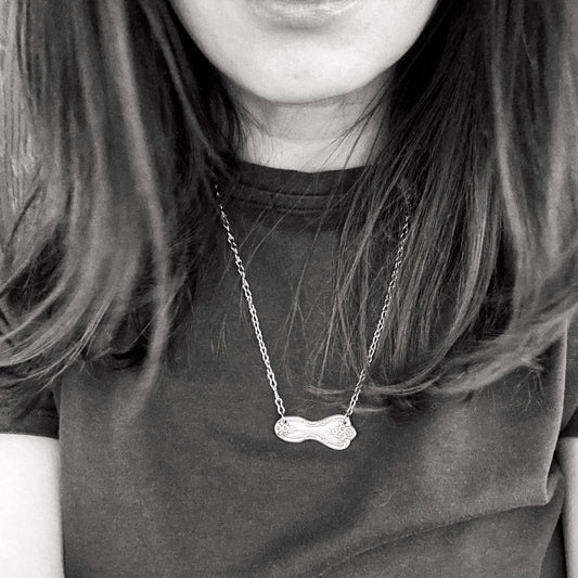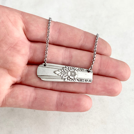 La Rose 1938, Spoon Handle Bar Necklace, Reclaimed Silverware Necklace, Vintage Silver Necklace