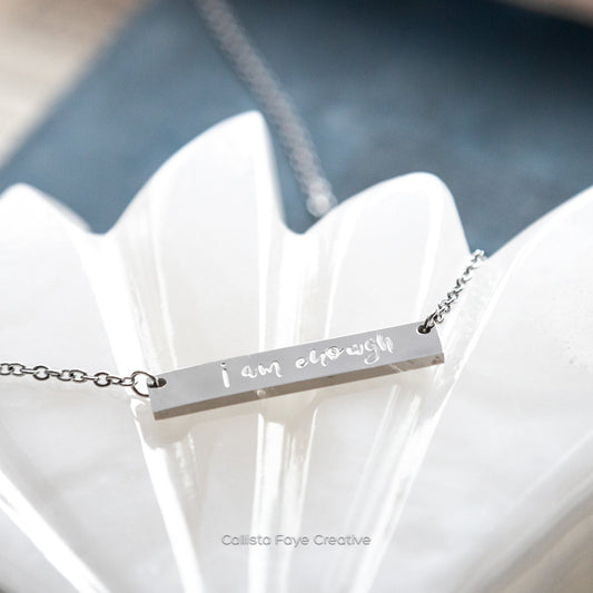 I Am Enough, Hand Stamped Bar Affirmation Necklace