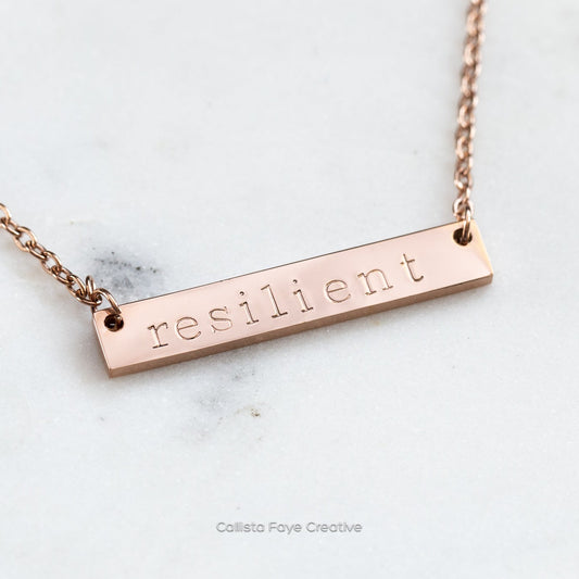 Resilient, Hand Stamped Bar Affirmation Necklace