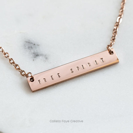 Free Spirit, Hand Stamped Bar Affirmation Necklace