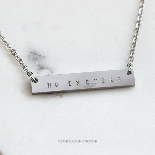 No Excuses, Hand Stamped Bar Affirmation Necklace