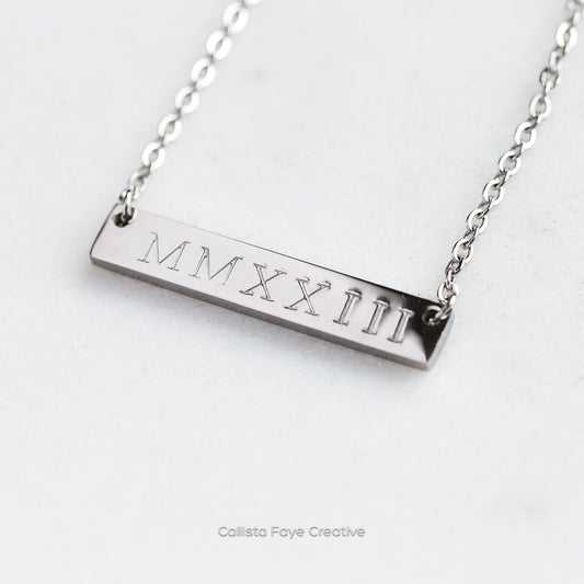 MMXXV, Graduation Gift 2025, Hand Stamped Bar Necklace