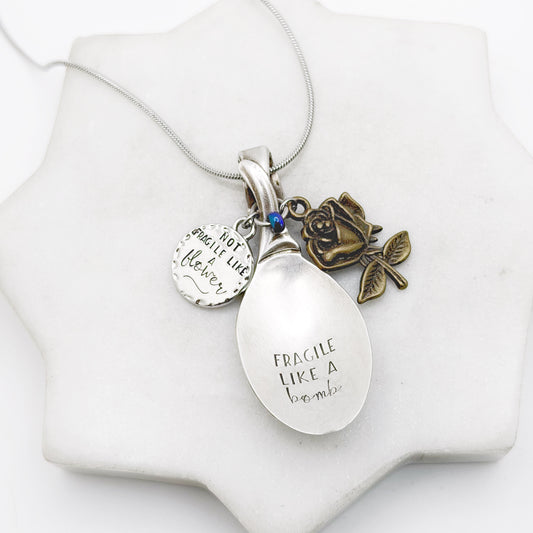 Fragile Like a Bomb, Spoon Bowl Necklace, Vintage Spoon Jewelry