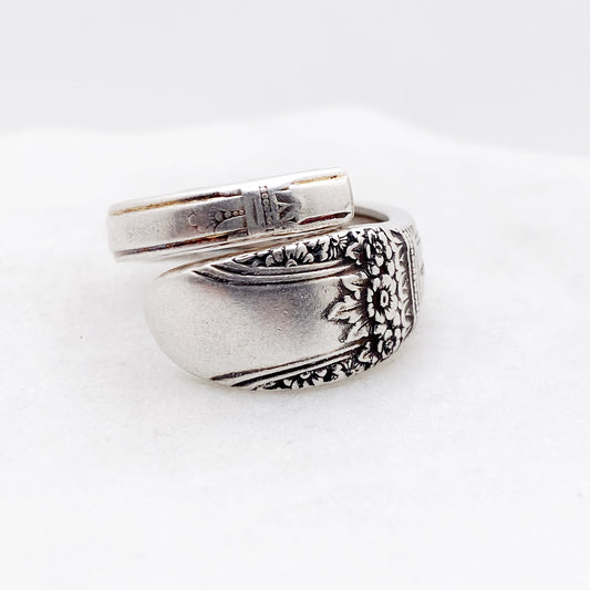 Bridal Wreath 1950, Custom Size Spoon Ring, Vintage Silverware Ring