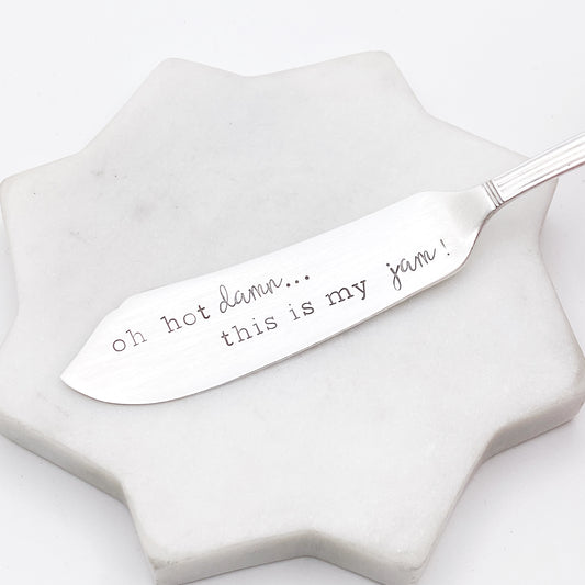 Oh Hot Damn This Is My Jam, Hand Stamped Vintage Spreader