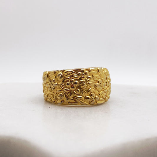 Golden Bouquet 1980, Custom Size Spoon Ring, Vintage Silverware Ring