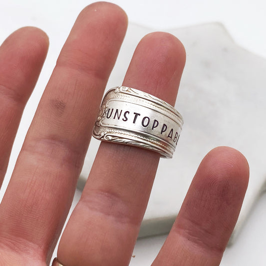 Unstoppable, Cotillion 1937, Custom Size Spoon Ring, Vintage Silverware Ring