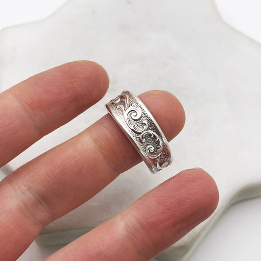Spring Charm 1950, Custom Size Spoon Ring, Vintage Silverware Ring