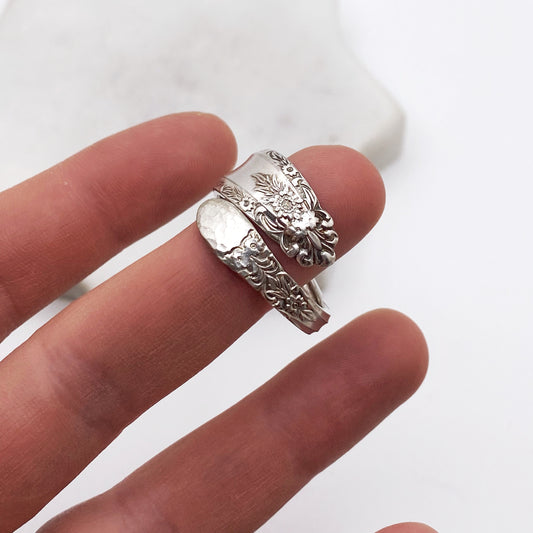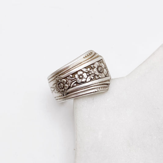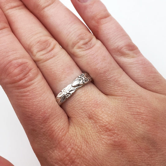 Bridal Wreath 1950, Custom Size Spoon Ring, Vintage Silverware Ring